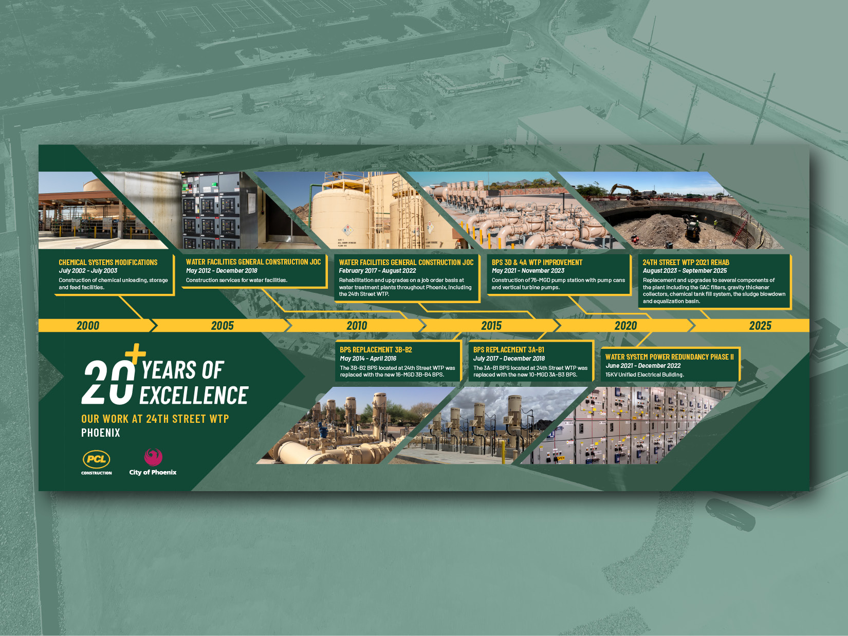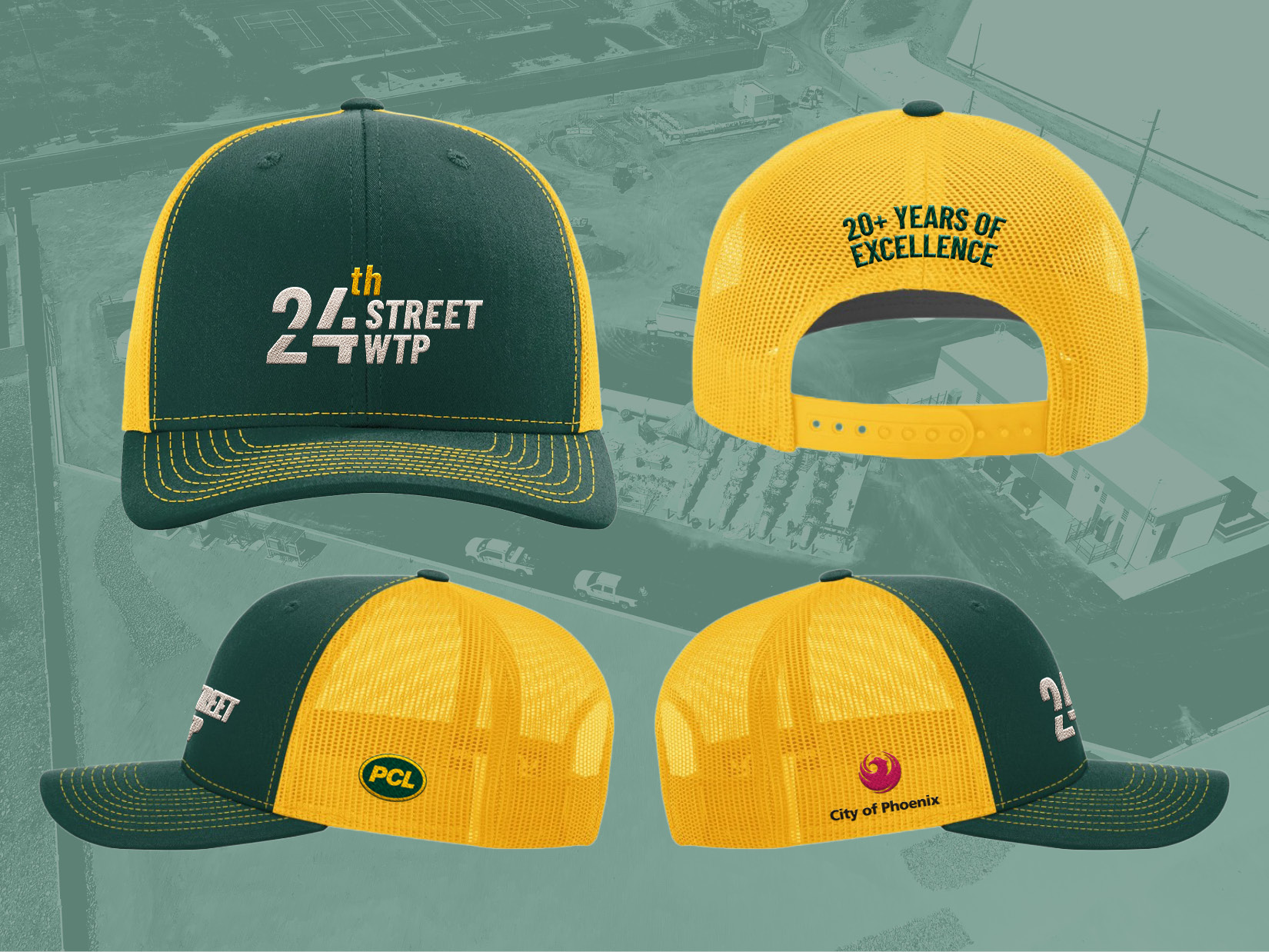 I was tasked with designing a timeline poster for PCL’ Construction’s 24th Street WTP project. I kept the apparel in mind early in the process to ensure the poster, hats, and shirts are cohesive.